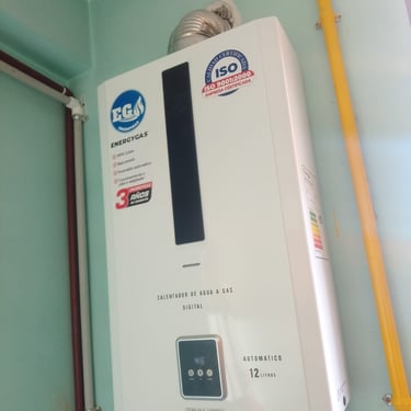 El modelo de 12 litros ofrece mayor potencia y estabilidad, ideal para familias medianas que buscan agua caliente constante.